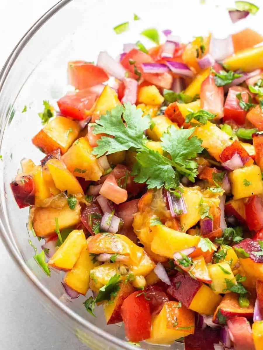 Leftover peach salsa can be stored in an airtight container in the refrigerator for up to 3 days. Stir it before serving to reincorporate everything. I don’t recommend freezing this recipe, as the textures and flavors won’t be as vibrant.
